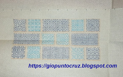 Me he quedado pegada con este sampler de blackwork, se avanza bastante rápido y es muy resultón. Creo que me pondré al día rápidamente. A por la siguiente parte :)